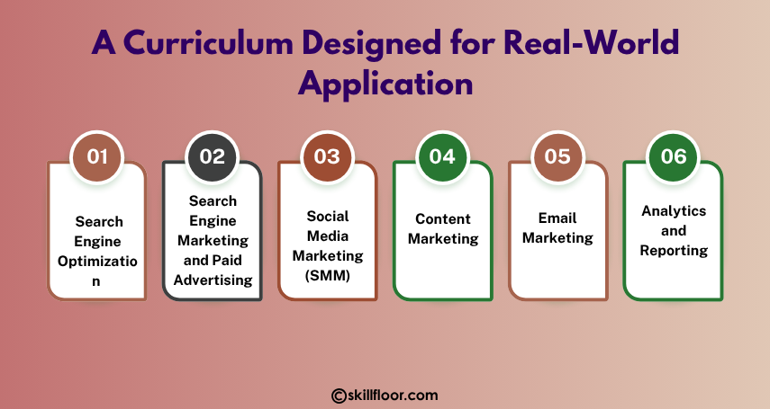 Skillfloor’s curriculum ensures that anyone completing the digital marketing course in Hyderabad can confidently handle real projects.